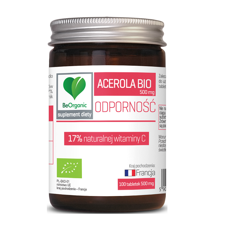 Acerola Bio 500mg 100 tabletek BeOrganic – naturalna witamina C w tabletce