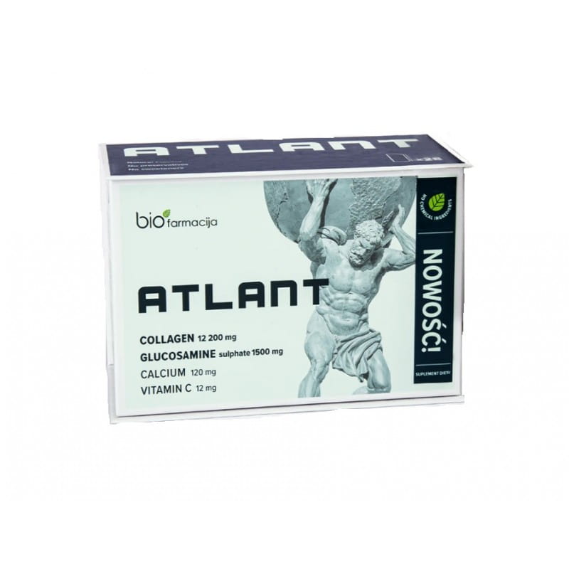 Atlant - Kompleks kolagenowo-glukozaminowy z dodatkiem wapnia i witaminy C 28 saszetek bioFarmacja