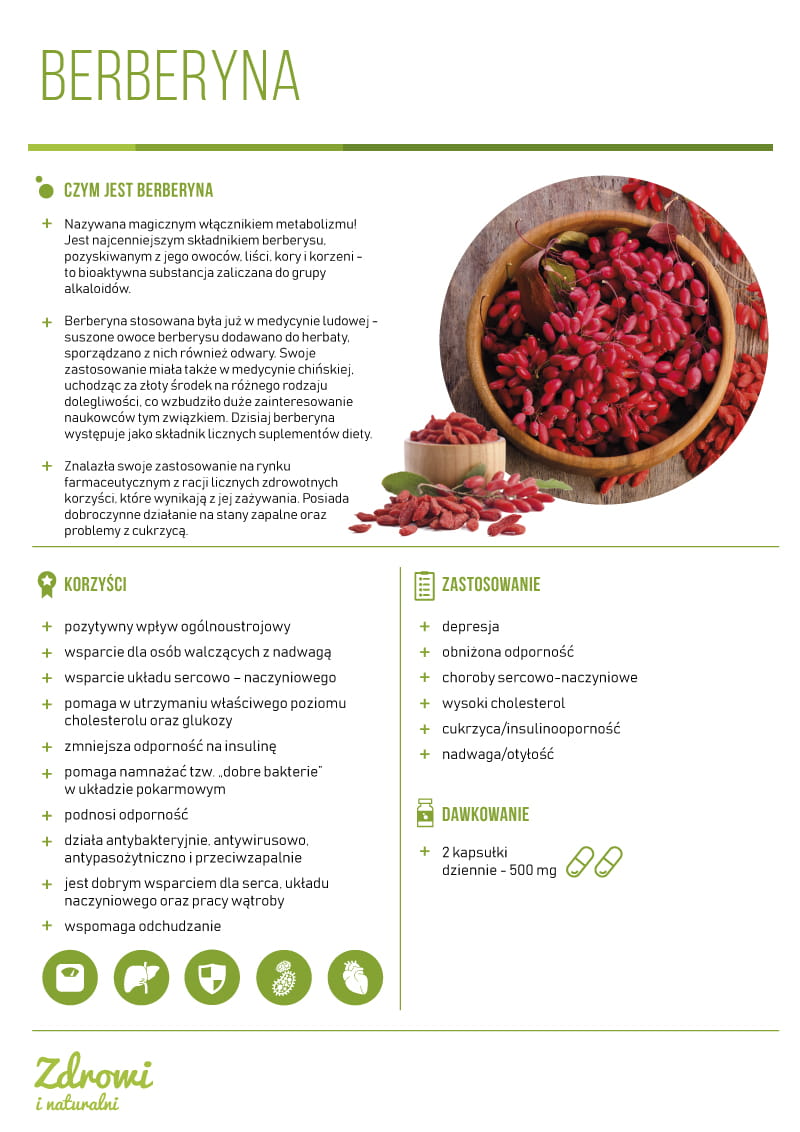 Składniki: chlorowodorek berberyny; substancja wypełniająca: celuloza mikrokrystaliczna; substancja przeciwzbrylająca: dwutlenek krzemu; substancja przeciwutleniająca: palmitynian askorbylu; hydroksypropylometyloceluloza; wosk carnauba; sól dwusodowa pirolochinolinochinonu; nośnik: beta - cyklodekstryna; składnik otoczki kapsułki: hydroksypropylometyloceluloza.