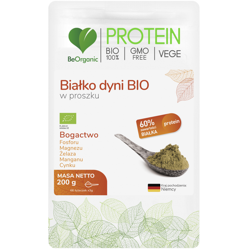 Białko dyni BIO w proszku 200g BeOrganic – naturalne białko roślinne w czystej formie