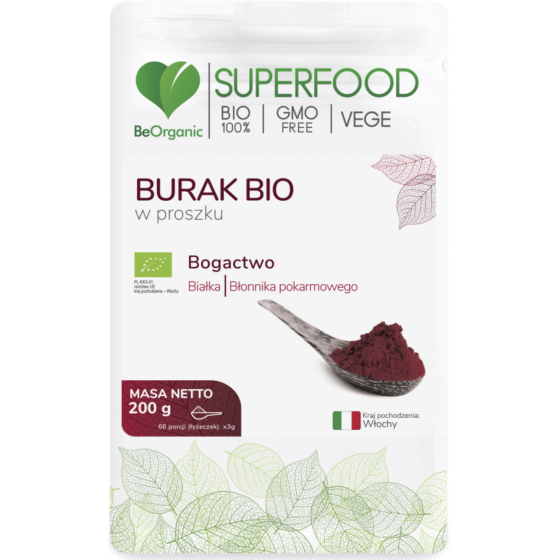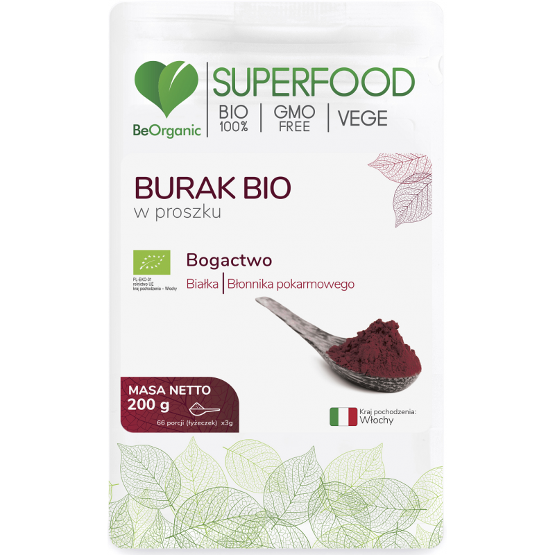 Burak bio w proszku 200g BeOrganic – suplement roślinny w formie proszku