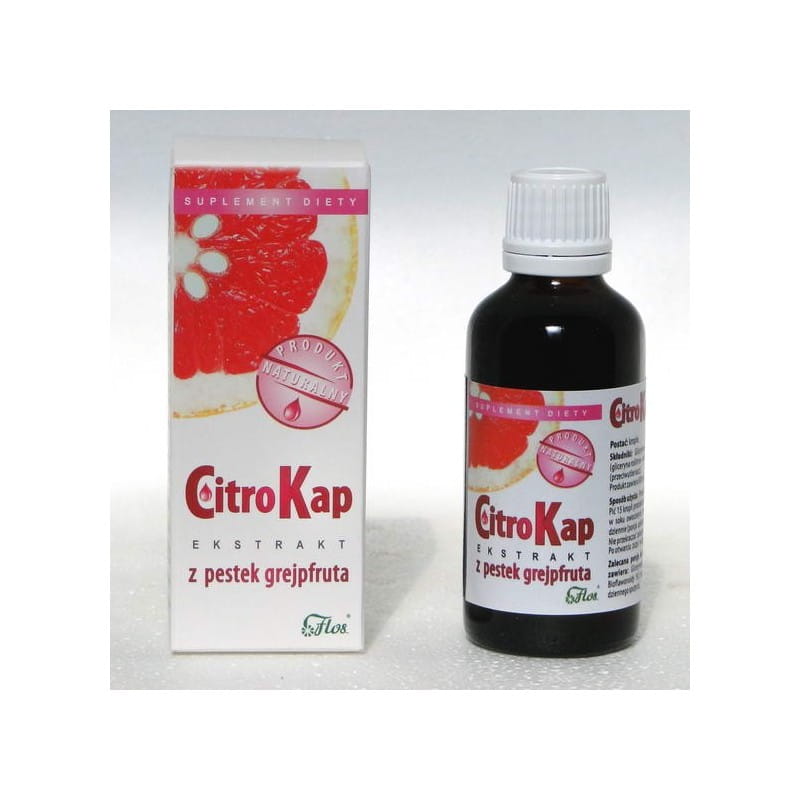 Citrokap to ekstrakt z pestek grejpfruta dostępny w wygodnym opakowaniu 50 ml. Produkt marki Flos oferuje glicerynowy ekstrakt z pestek grejpfruta w formie płynnej, wzbogacony o witaminę C w formie kwasu L-askorbinowego. To propozycja dla osób poszukujących suplementu z prostym, transparentnym składem, który można łatwo włączyć do codziennej rutyny.