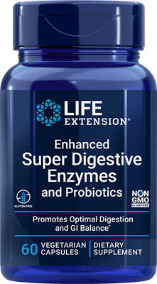 Formuła Enhanced Super Digestive Enzymes with Probiotics oferuje silne enzymy wspierające naturalne reakcje, które rozkładają spożywane pokarmy: