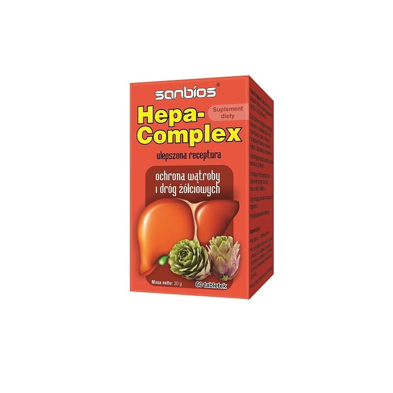 Hepa-Complex 60 tabl. Sanbios ochrona wątroby i dróg żółciowych karczoch mniszek lekarski mięta pieprzowa koper włoski jałowiec
