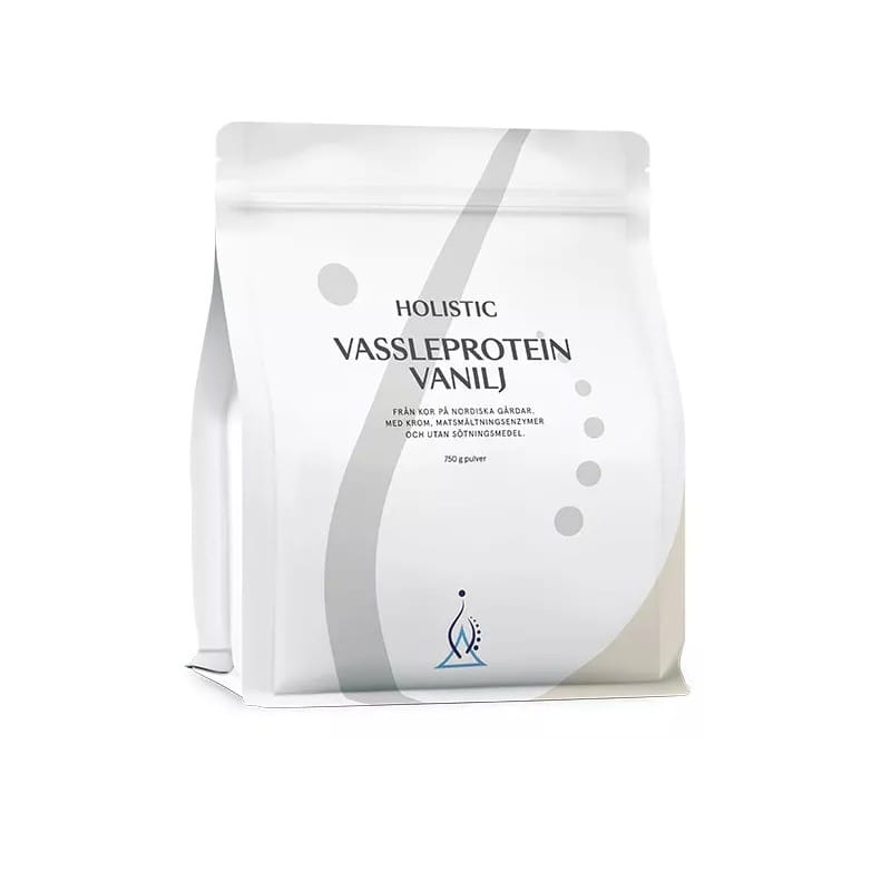 Holistic Protein Vanilj to suplement diety w formie proszku, opracowany jako funkcjonalna formuła białkowa, przeznaczona do świadomej suplementacji osób dbających o prawidłową podaż białka, regenerację mięśni oraz uzupełnienie diety w aminokwasy. Produkt bazuje na ultrafiltrowanym koncentracie białek serwatkowych (WPC), charakteryzującym się wysoką wartością biologiczną i korzystnym profilem aminokwasowym.