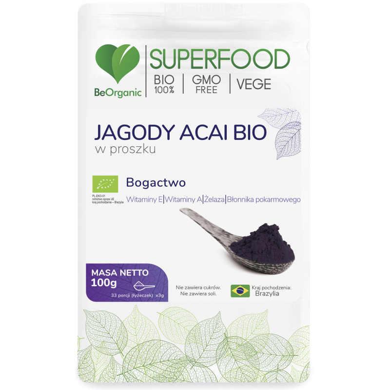 Jagody Acai bio BeOrganic to propozycja dla tych, którzy chcą wprowadzić do swojej codziennej diety naturalny, organiczny składnik o transparentnym pochodzeniu i prostym składzie.