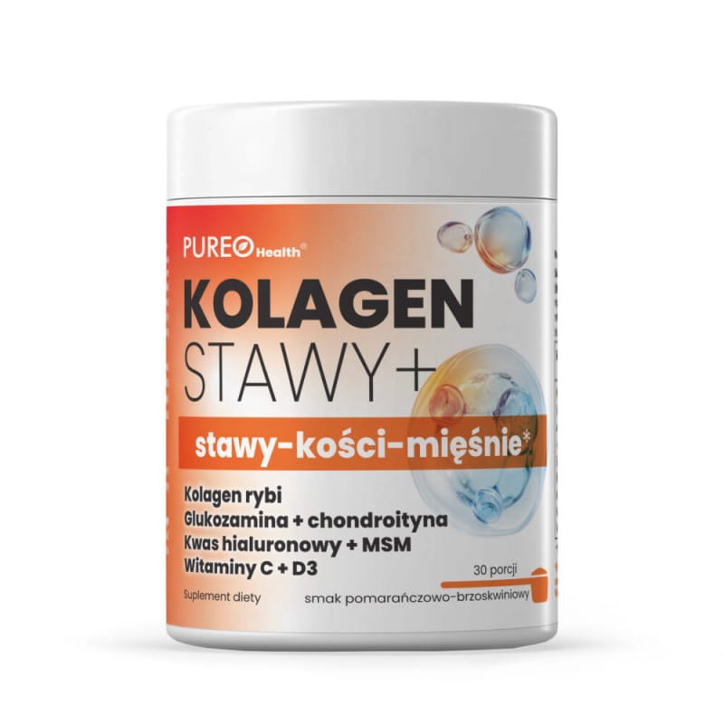 Kolagen Stawy+ stawy kości mięśnie 30 porcji smak pomarańczowo-brzoskwiniowy Pureo Health kolagen rybi glukozamina chondroityna