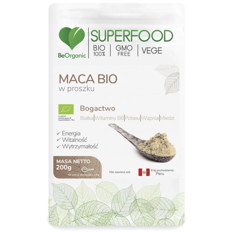 Maca bio BeOrganic to propozycja dla osób, które chcą wprowadzić do swojej diety składnik o tradycyjnym pochodzeniu, w formie czystego, ekologicznego proszku, bez kompromisów w składzie.