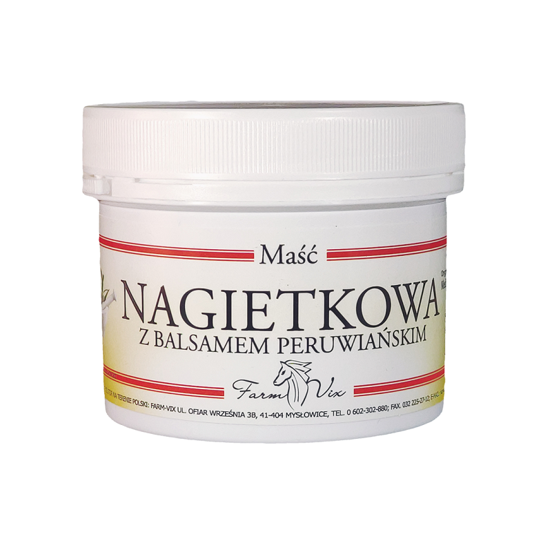 MAŚĆ NAGIETKOWA z balsamem peruwiańskim – Maść posiada właściwości przeciwbakteryjne.Charakteryzuje się przyjemnym zapachem, łączy właściwości nagietka i balsamu peruwiańskiego, sprzyjając regeneracji naskórka. Działa osłaniająco, zabezpieczając przed niekorzystnym wpływem warunków atmosferycznych.