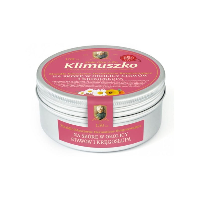Mazidło na skórę w okolicy stawów i kręgosłup DERMATICUS,mazidło ziołowe wspomaga, rozgrzewa i  relaksuje skórę na plecach, kręgosłupie, kolanach, łokciach oraz  zmęczone mięśnie lub stawy, także w przypadkach pochodzenia reumatycznego.Opakowanie : 150 ml