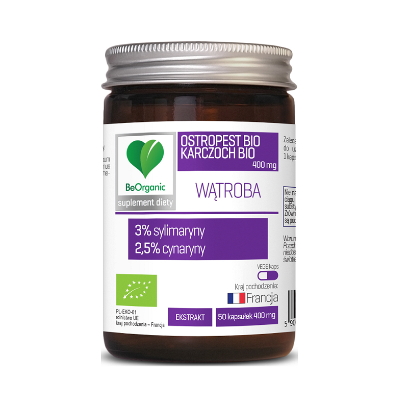 Ostropest + Karczoch bio 400mg 50 kaps. – naturalne ekstrakty w kapsułkach BeOrganic