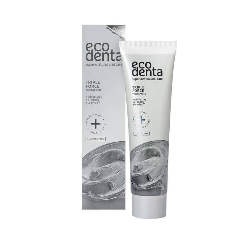 Pasta do zębów o potrójnym działaniu z białą glinką propolisem i Teavigo bez fluoru 100 ml Ecodenta