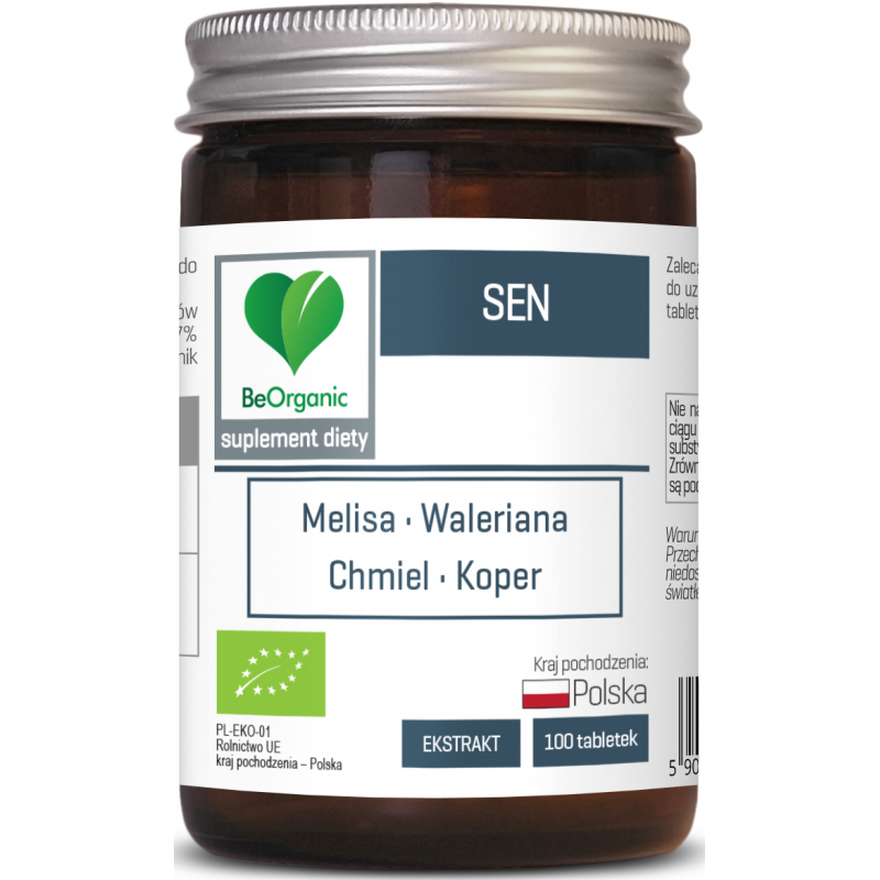 Sen 100 tabl. BeOrganic – tabletki z ekstraktami ziół z certyfikowanych upraw ekologicznych
