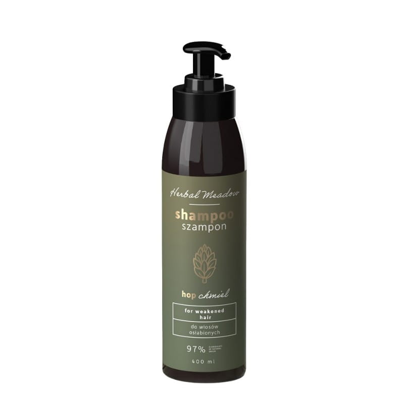 Szampon do włosów osłabionych 400ml Herbal Meadow Hiskin chmiel kozieradka skrzyp polny czarna rzepa