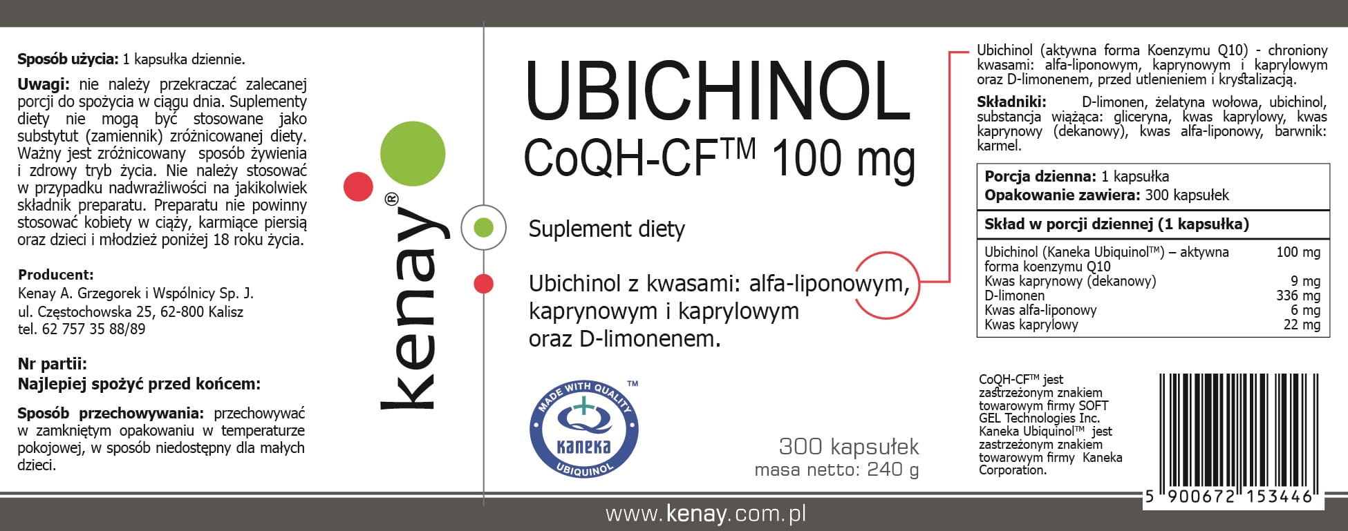 Kapsułki z Kaneka UbiquinolTM dostarczają koenzym Q10 osobom, których organizm nie jest w stanie sam go wytworzyć oraz podnosi poziom tego związku w organizmie. Ubichinol to forma Koenzymu Q10, która natychmiast może uczestniczyć w procesie produkcji energii.