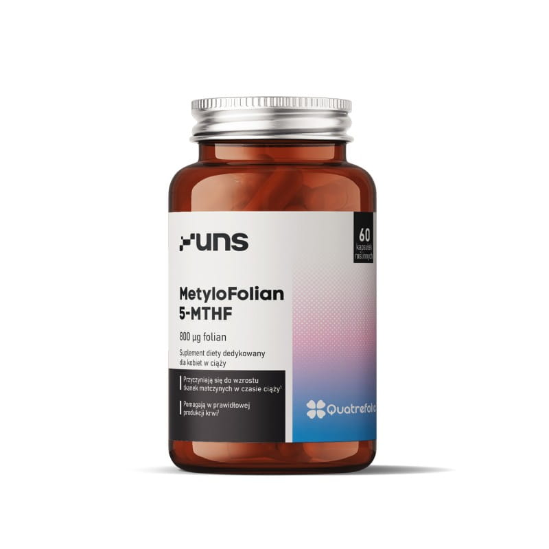UNS MetyloFolian 5-MTHF to nowoczesny suplement diety zawierający aktywną, metylowaną formę folianu – Quatrefolic®, która charakteryzuje się wysoką biodostępnością i stabilnością. Jest to forma folianu rekomendowana w literaturze specjalistycznej oraz stosowana w suplementacji kobiet planujących ciążę, w ciąży oraz karmiących piersią, a także osób mających trudności z przekształcaniem syntetycznego kwasu foliowego (np. przy wariantach genu MTHFR).