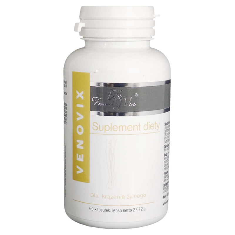 VENOVIX to suplement w formie 60 kapsułek, który łączy ekstrakt z nasion kasztanowca (Hippocastani Semen), hesperydynę zmikronizowaną, ekstrakt z ruszczyka kolczastego oraz witaminę C. Produkt jest dystrybuowany przez Farm-Vix i wyprodukowany przez RNDr. Ing. Ivan Olejnicek - Medin Terra w Czechach. Opakowanie wystarcza na około 30 dni regularnego stosowania – dwie kapsułki dziennie.