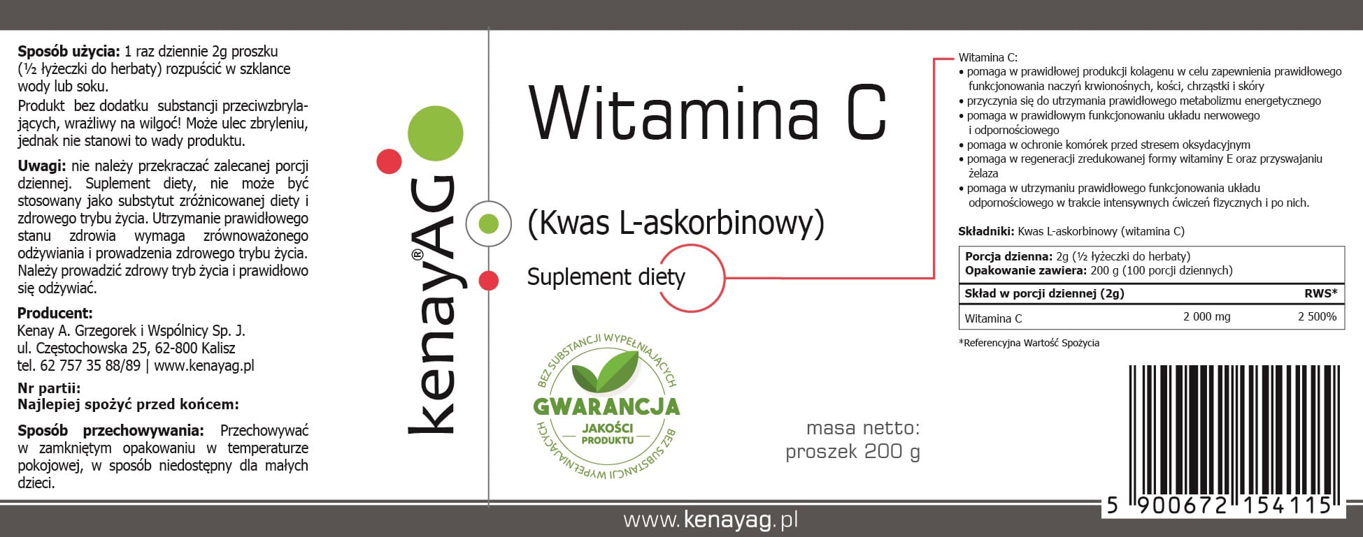 Witamina C Kwas L-askorbinowy proszek 200 g Kenay