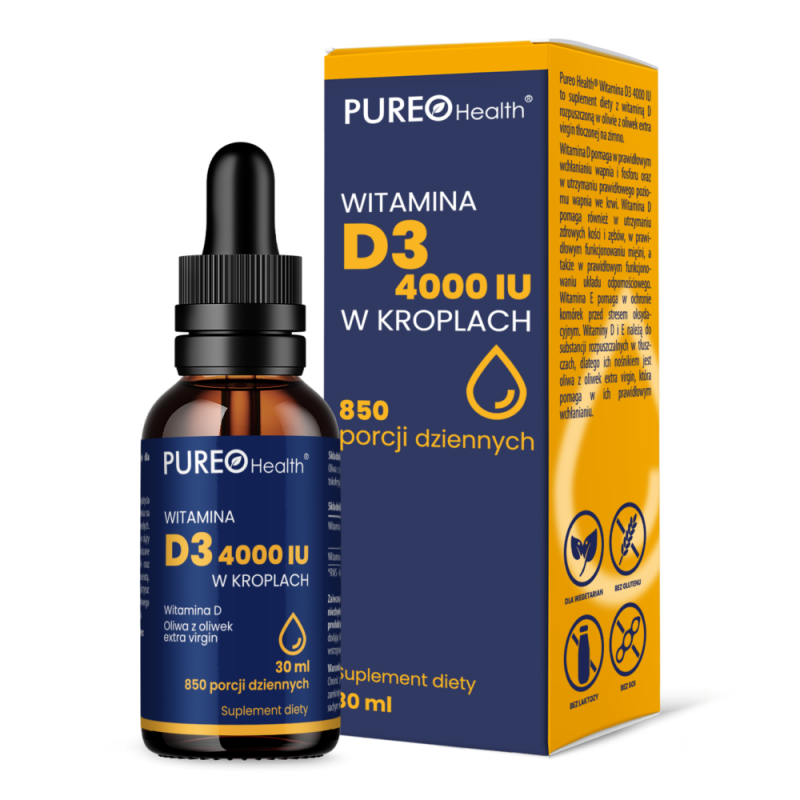 Witamina D3 4000IU 30ml Pureo Health – suplement w kroplach z naturalną oliwą z oliwek