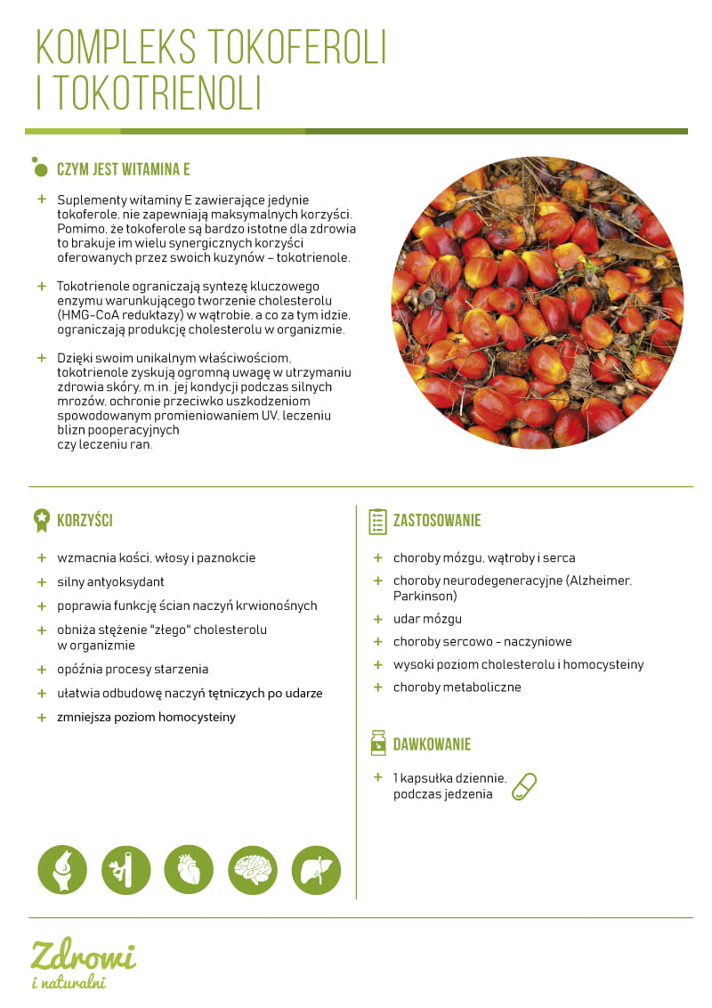Tokotrienole z palmy i ryżu zawierają: Alfa-tokotrienol Beta-tokotrienol Gamma-tokotrienol Delta-tokotrienol |