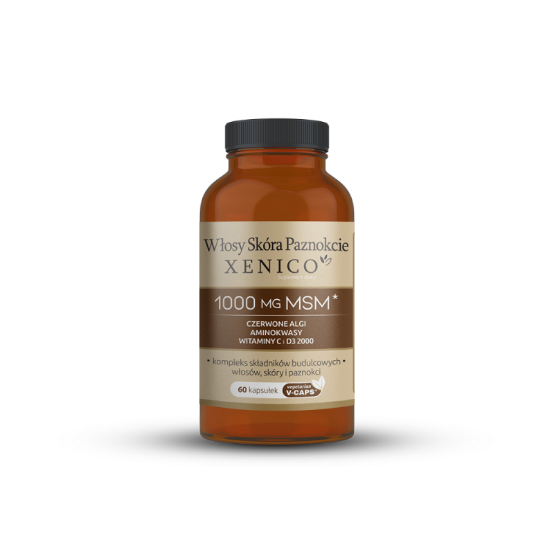 Włosy Skóra Paznokcie 60 kaps. Xenico Pharma msm czerwone algi aminokwasy witamina C witamina D