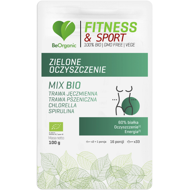 Zielone Oczyszczenie 100g BeOrganic trawa jęczmienna trawa pszeniczna chlorella spirulina Chlorella vulgaris