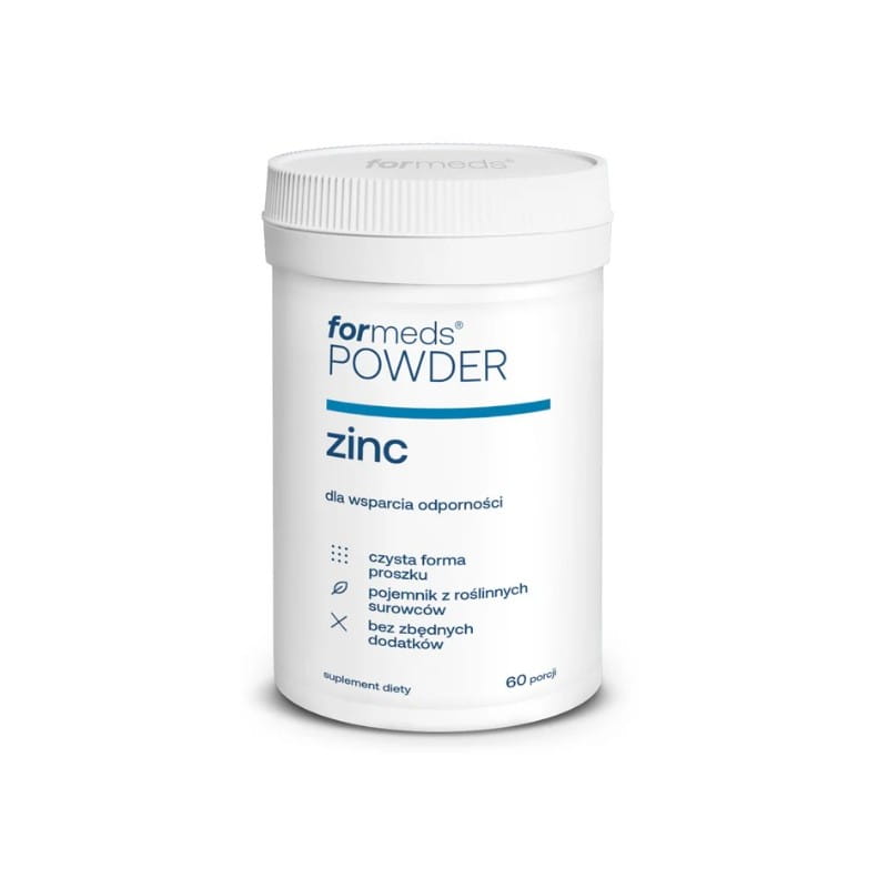 Zinc 48g od marki Formeds to suplement w formie proszku, który oferuje cytrynian cynku w wygodnej formie do rozpuszczania. Opakowanie zawiera 60 porcji, co pozwala na regularne stosowanie przez około 2 miesiące. Produkt dystrybuowany jest przez FORMEDS Sp. z o.o. z Poznania.